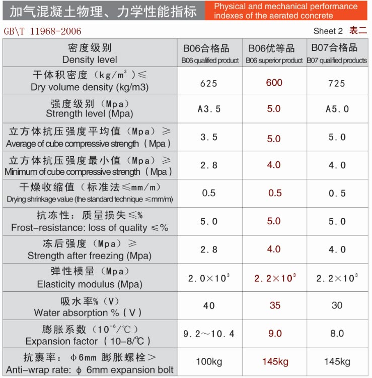 产品物理性能指标
